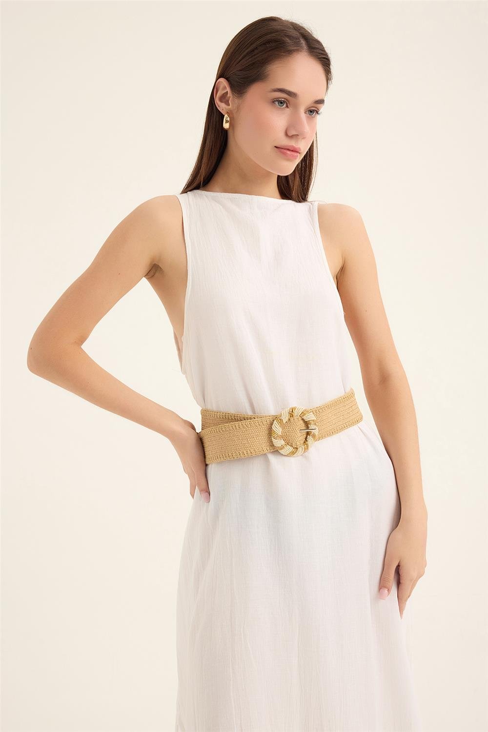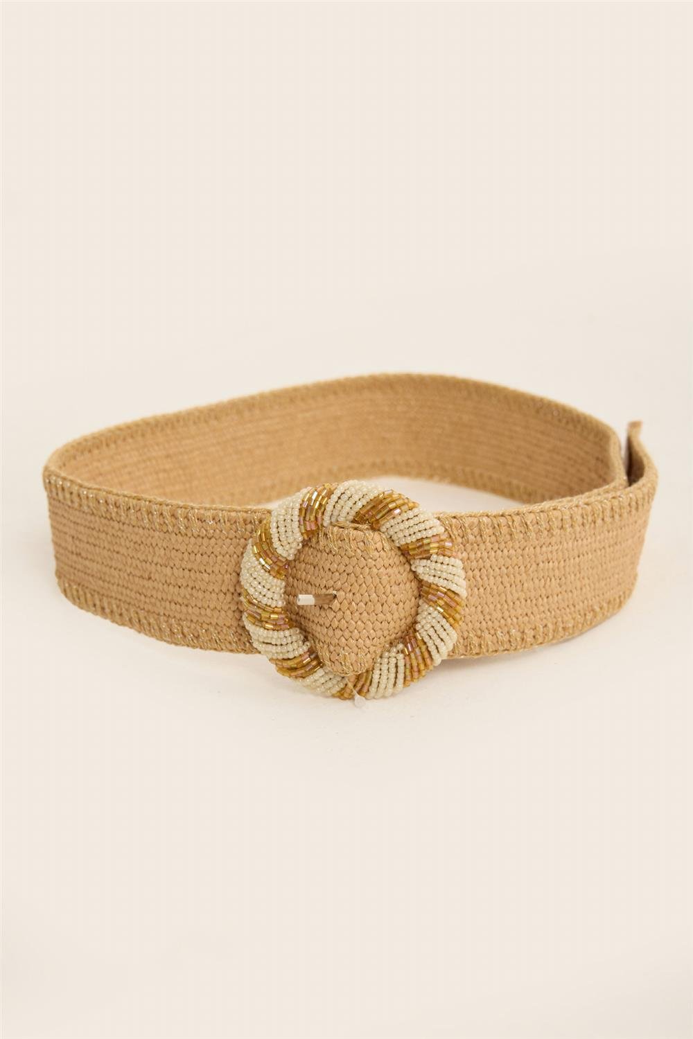 Kemer Hasır Örme Sim Kenarlı Kırma Taşlı Yuvarlak Tokalı