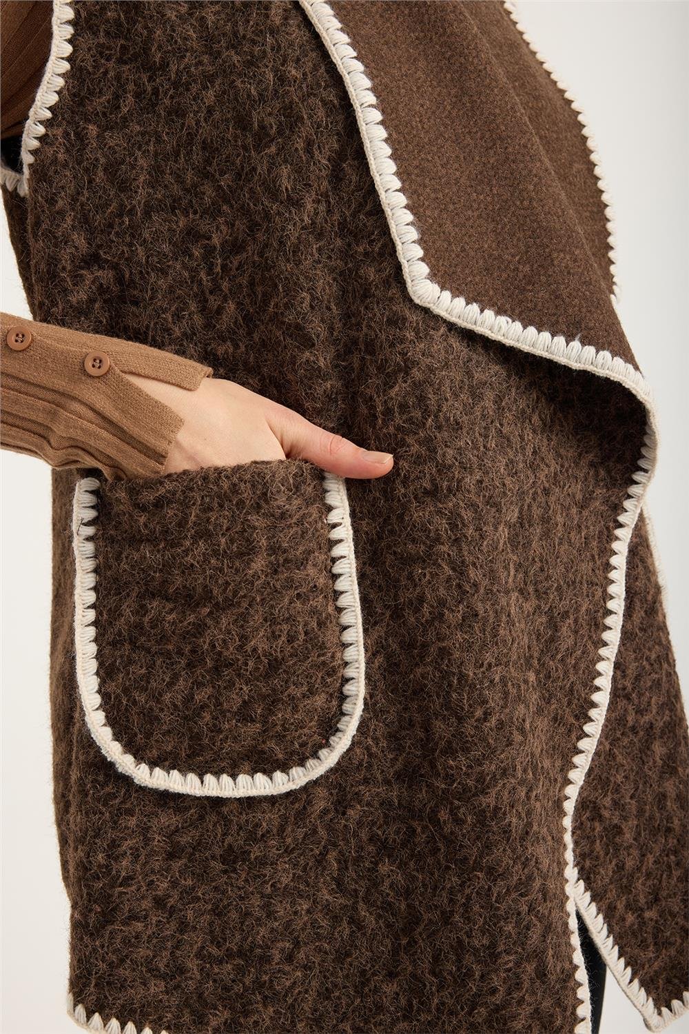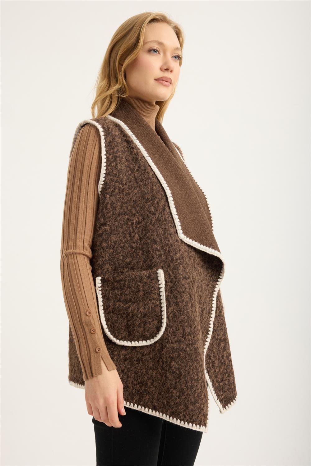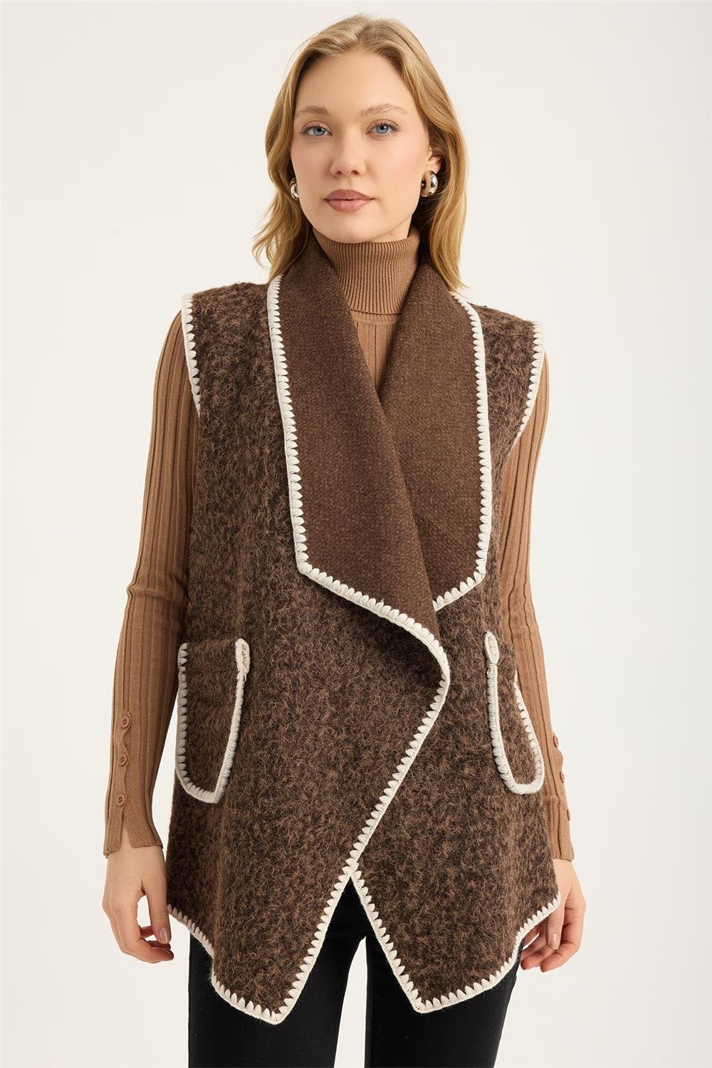 Katlı Yaka Kaşe Teğel Dikişli Yelek
