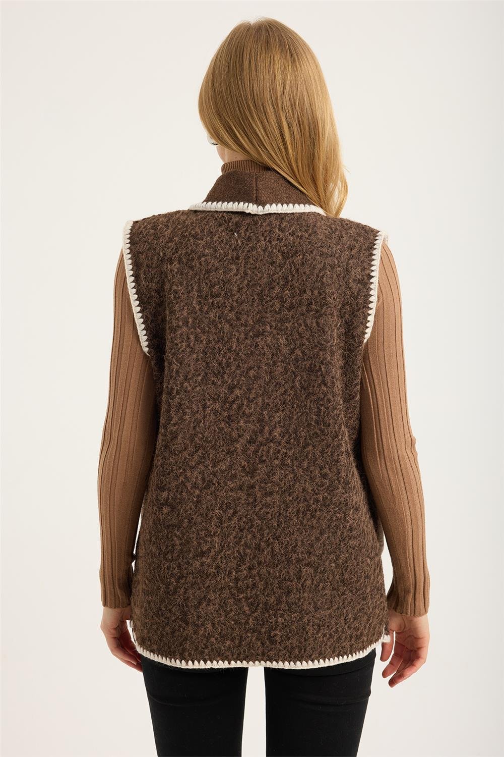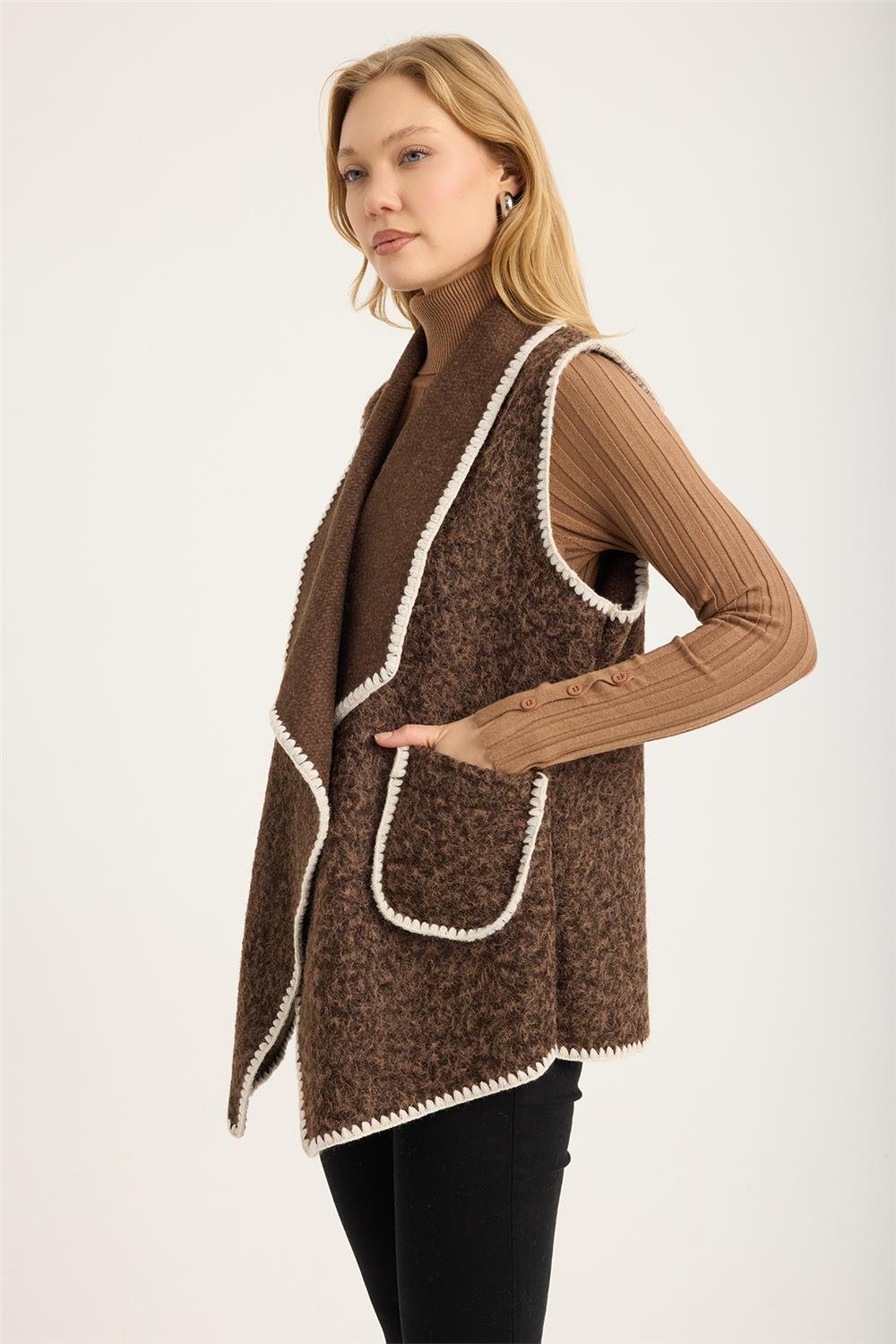 Katlı Yaka Kaşe Teğel Dikişli Yelek (25507003621)