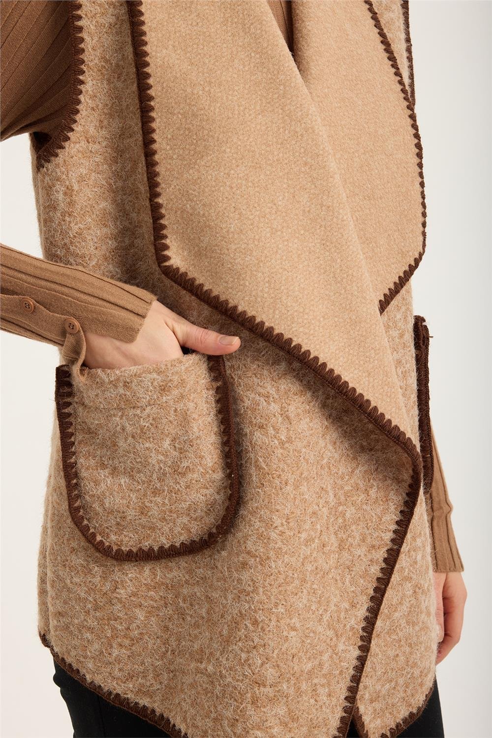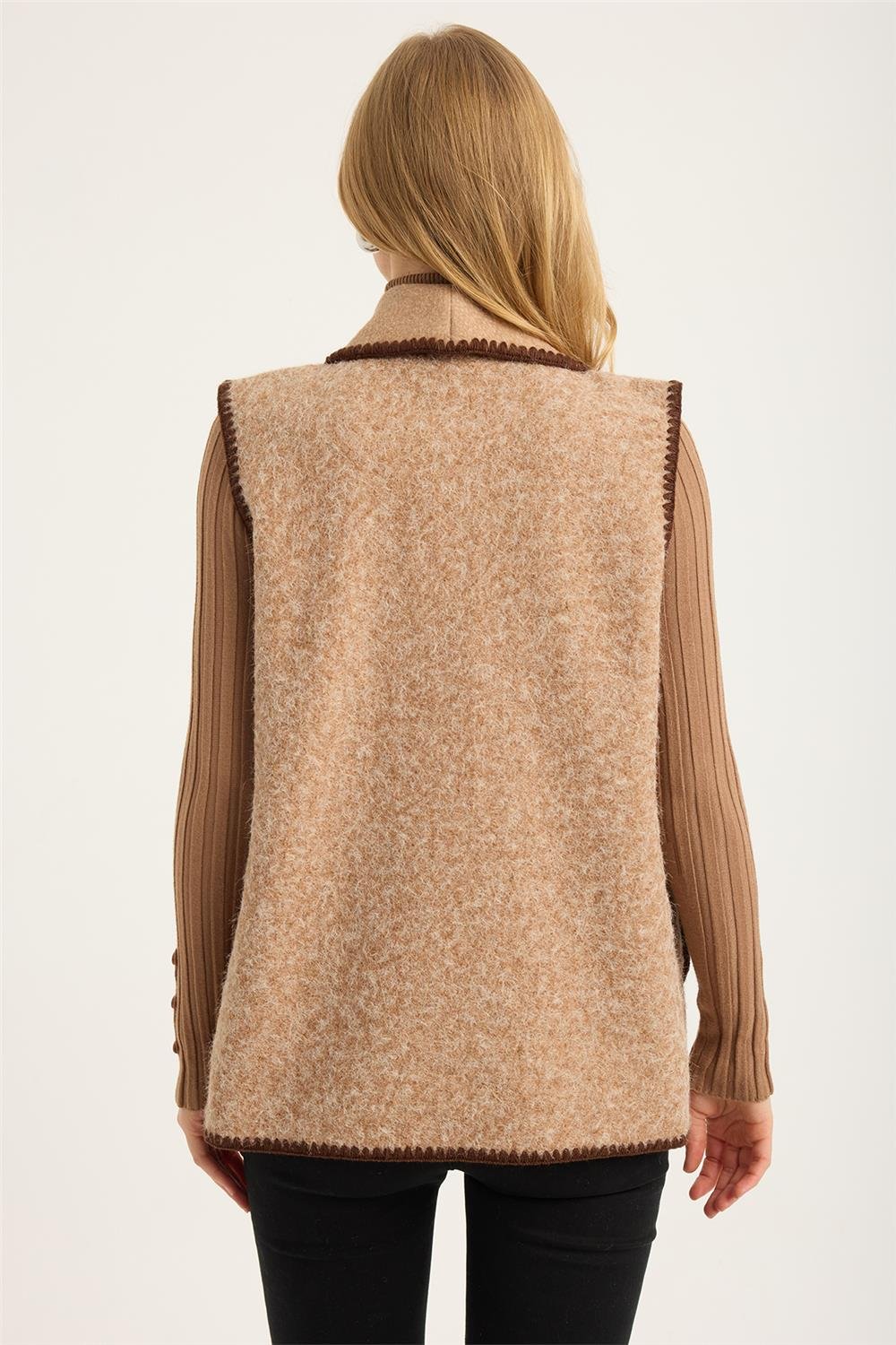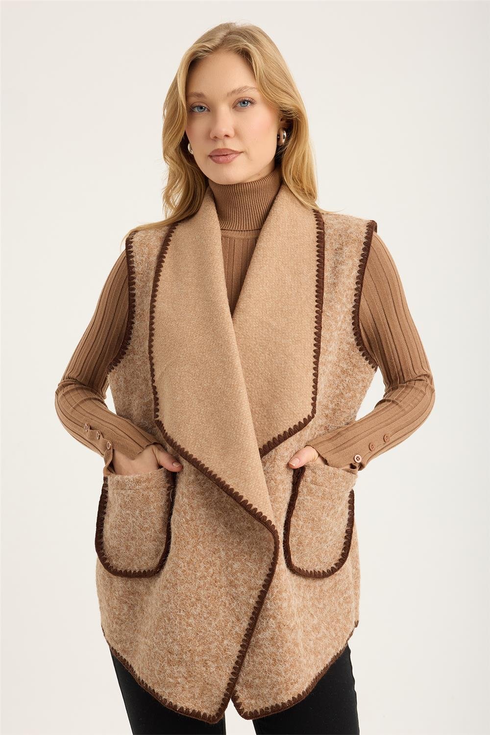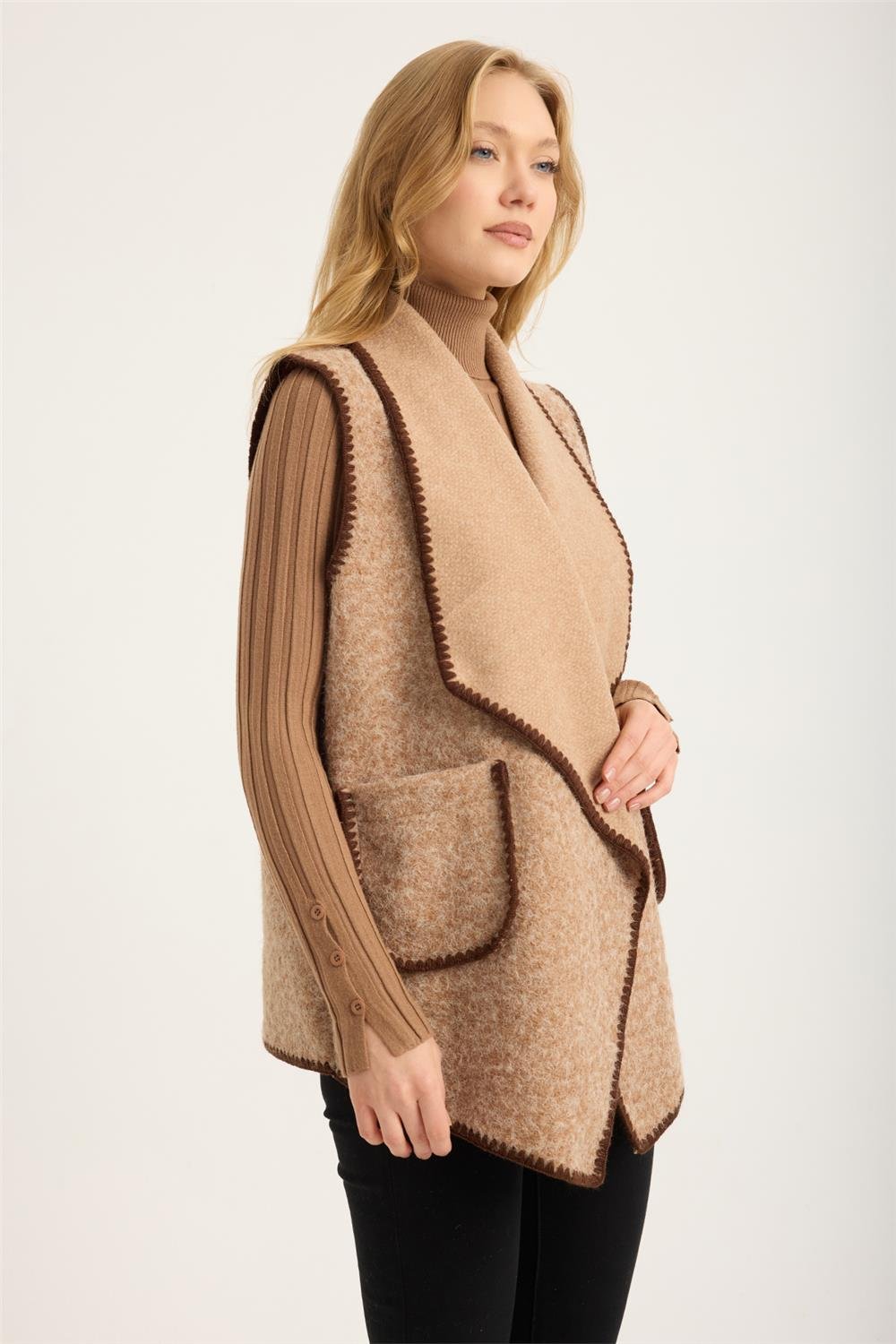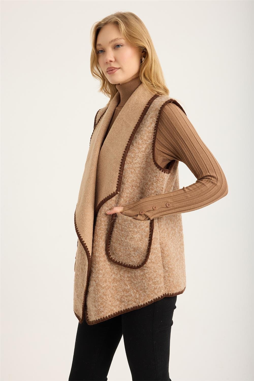 Yelek Katlı Yaka Kaşe Teğel Dikişli 2 Cepli