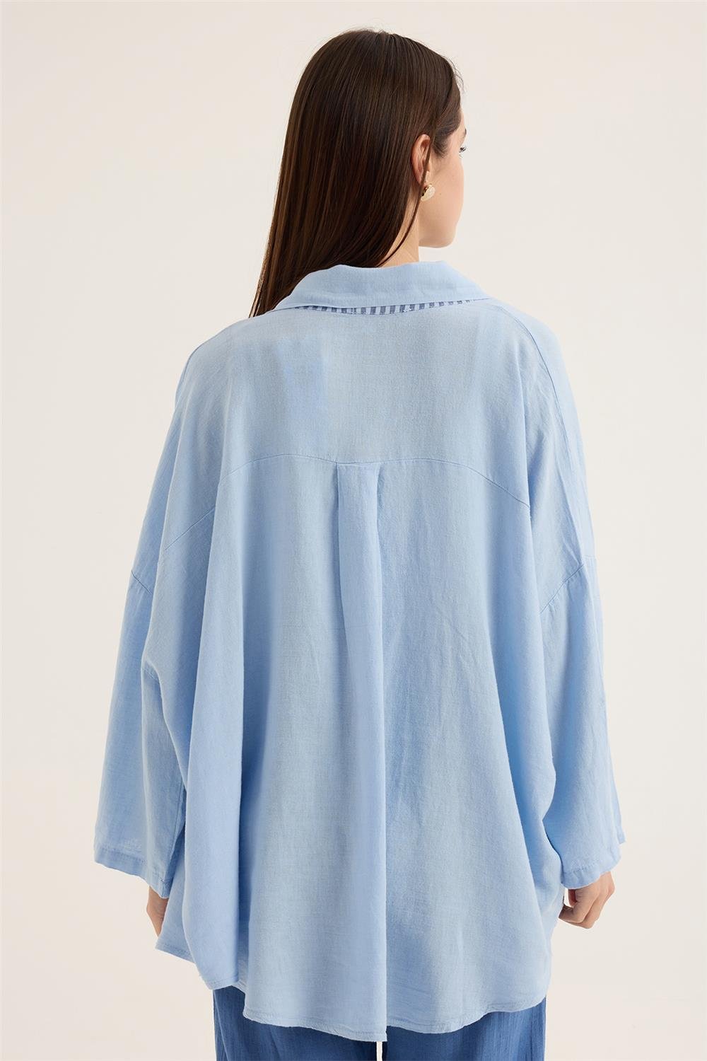 Gömlek Keten Çizgli Pacth.Yamalı Katlı Düğmeli Kol