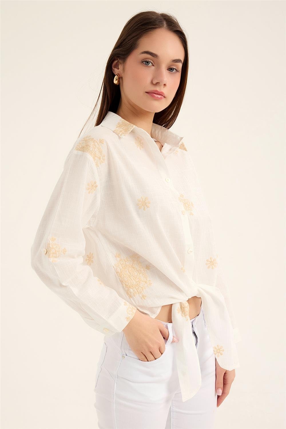 Gömlek Nakış İşlemeli Bel Bağlamalı