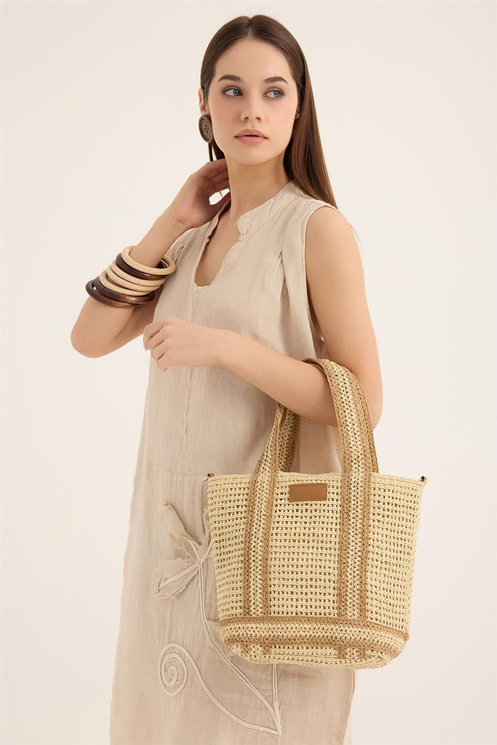 Çanta Paper İri Hasır Motifli Renk Şeritli