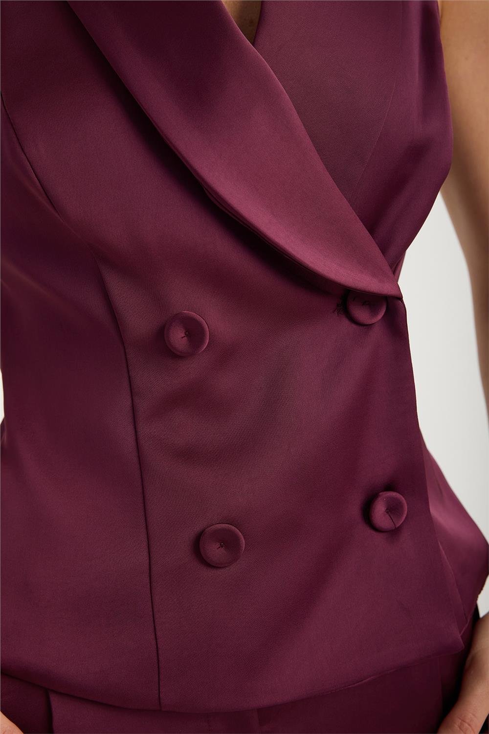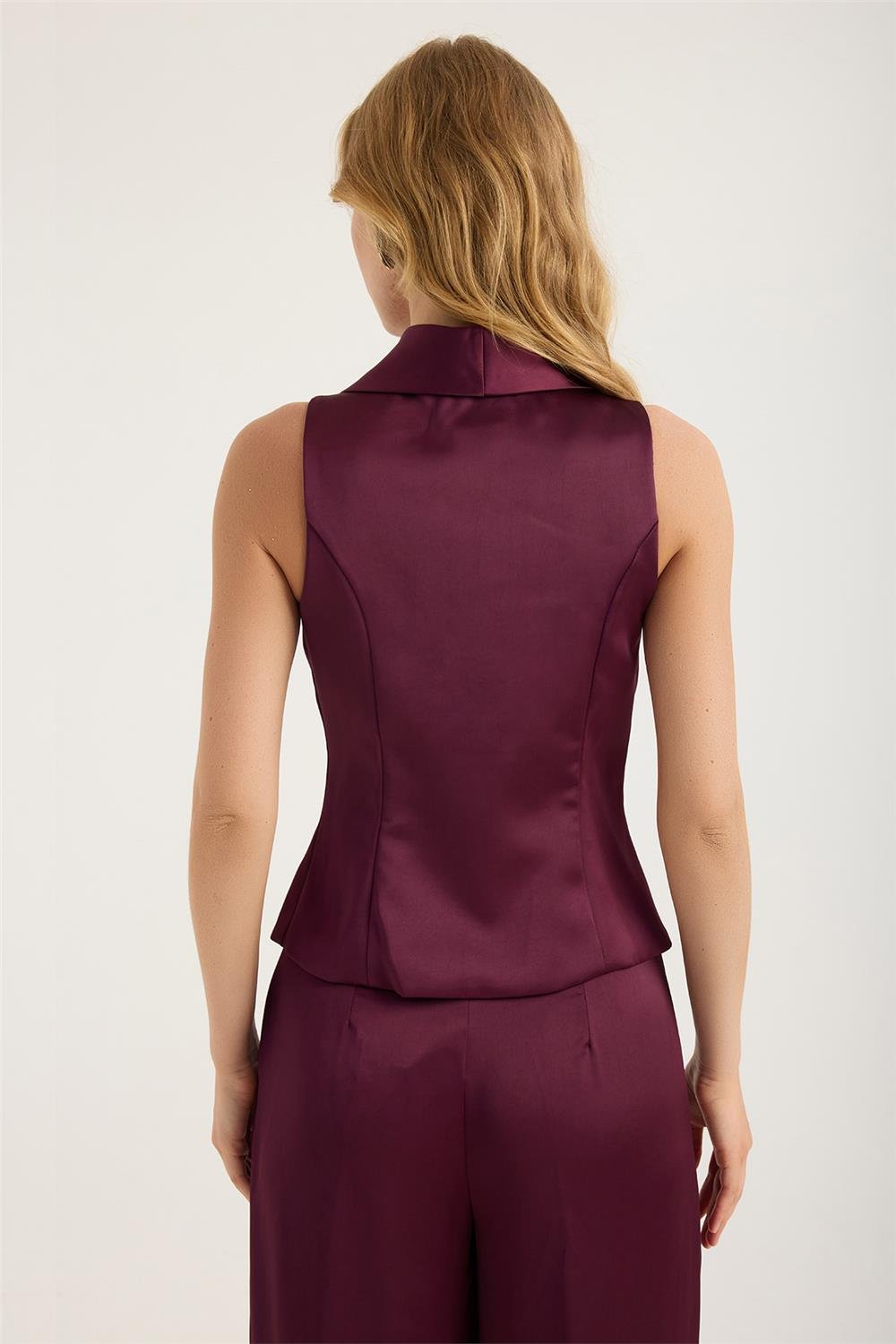 Yelek Saten Katlı Yaka 4 Düğmeli